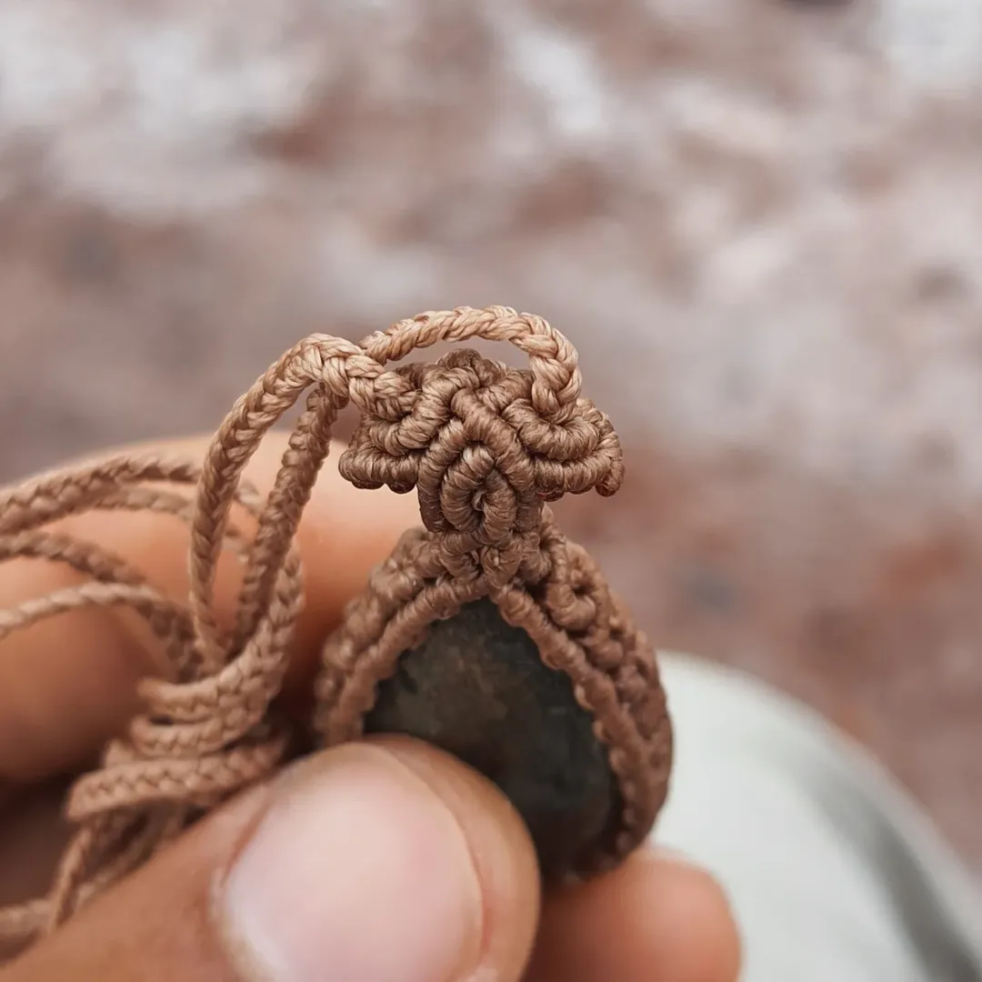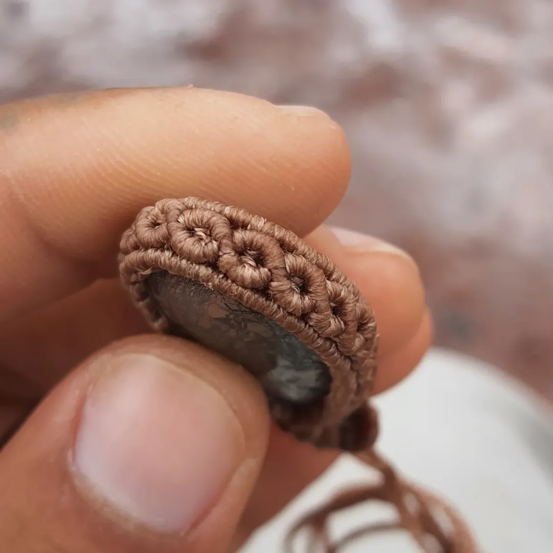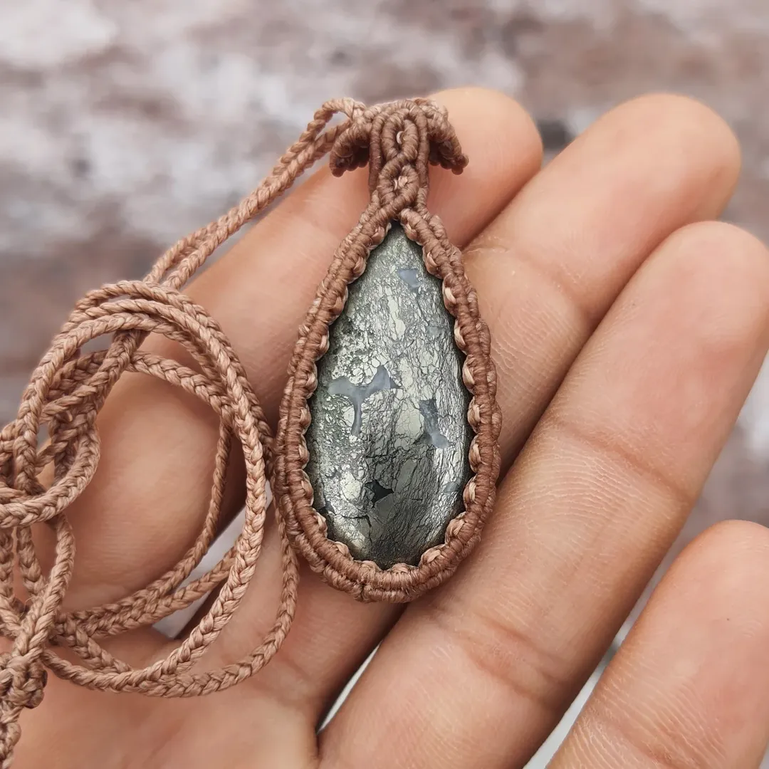 گردن آویز بافته شده با تکنیک گره بافی با سنگ عقیقِ مارکاسیت Handwoven micro macrame pendant With Marcasite stone