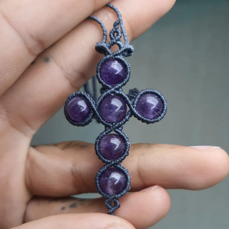 مشاهده محصولات مرتبطگردن آویز بافته شده با تکنیک گره بافی سنگ آمیتیست Handwoven micro macrame necklace With amethyst stone