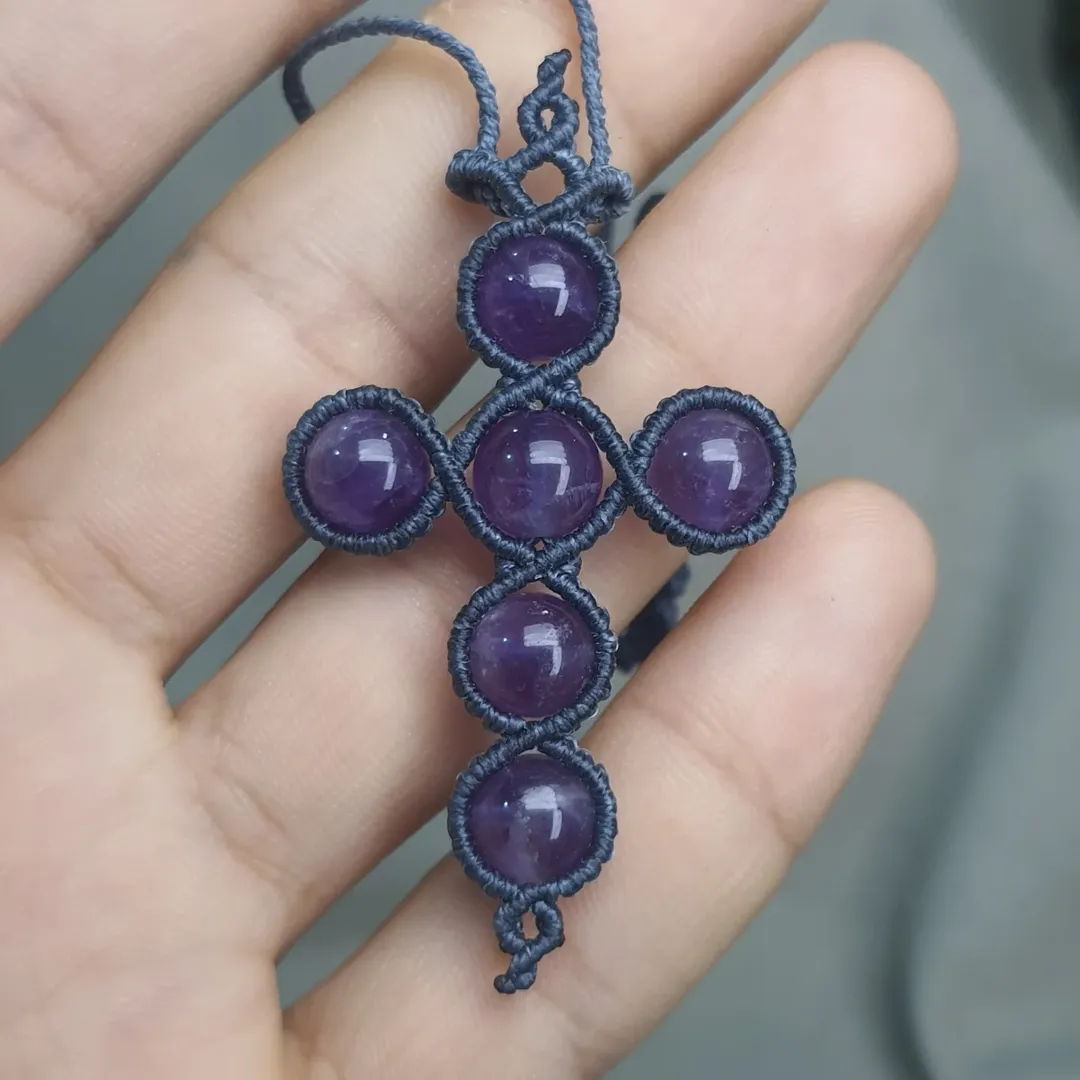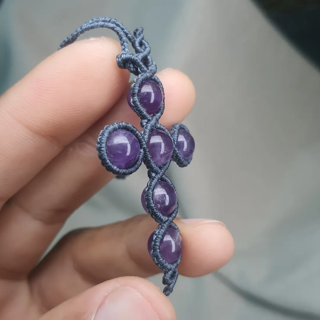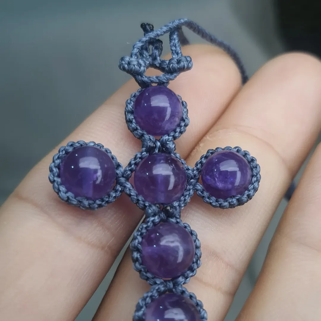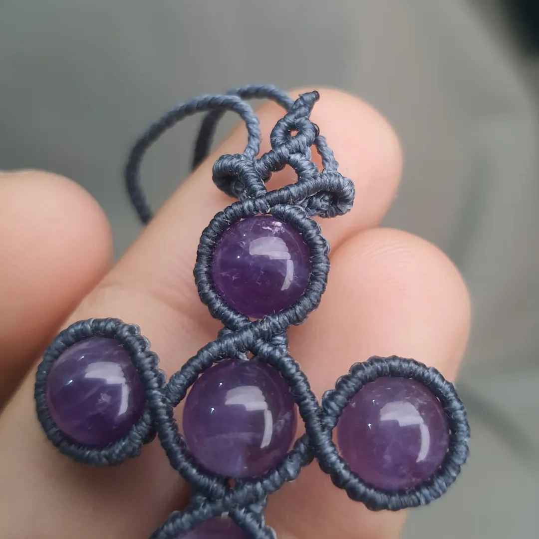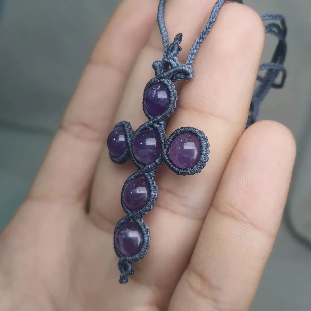 مشاهده محصولات مرتبطگردن آویز بافته شده با تکنیک گره بافی سنگ آمیتیست Handwoven micro macrame necklace With amethyst stone